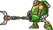 重落地摔擊(たたきつけ投げ/Tatakitsuke Nage)是RT-55J的兩種得意技巧之一(另一種是鉤爪掌擊)。將巨大的鉤爪往前發射抓住對手,再重重地將抓住的對手撞到牆上或地上的摔技。即使對手閃過了一開始的鉤爪,RT-55J也可以在抓住場邊之後快速地收手並朝向對手突進,是非常恐怖的二段攻擊。
