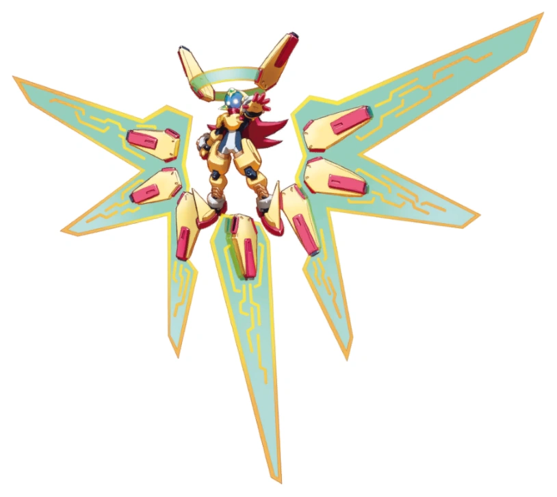 | 亞伯特展現究極的洛克人力量的姿態。 圍在本體旁的10個子機不只守衛亞伯特, 還能夠藉由改變排列而發揮各種生命金屬的能力攻擊。 |