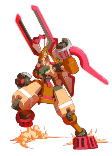 | 搭載型式V,得到的力量都用來讓頭部及兩腕的刀刃高熱化, 擅長以足部的噴射器進行一點突破戰法的強攻型偽假機體。 重視組織的「戒律」,違反者無論是誰都不會放過。 |