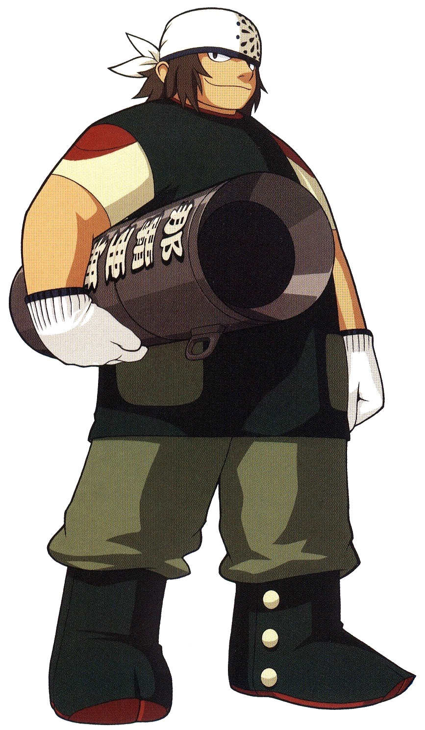 六尺玉燃次手上的煙火筒側面寫的字是「那覇亜無」,是「ナパーム(膠化汽油)」的四個音節分別寫成漢字的結果。